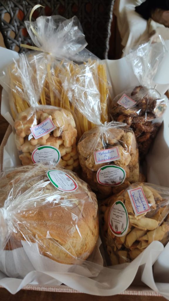 Sabores da Terra De Angelis A Sabores da Terra De Angelis reúne um vasto repertório de receitas artesanais que celebram o sabor e o cuidado no preparo. Entre seus destaques estão os pães caseiros, como o pão com alecrim e azeite de oliva, a baguete recheada com tomate seco, manjericão e azeitonas, e o delicioso pão de chocolate com calda de coco. Também produzem bolachas, bolos, tortas, geleias e frutas frescas, oferecendo uma variedade que agrada a todos os paladares. A marca preserva a herança familiar e se destaca pela combinação equilibrada entre tradição e criatividade.